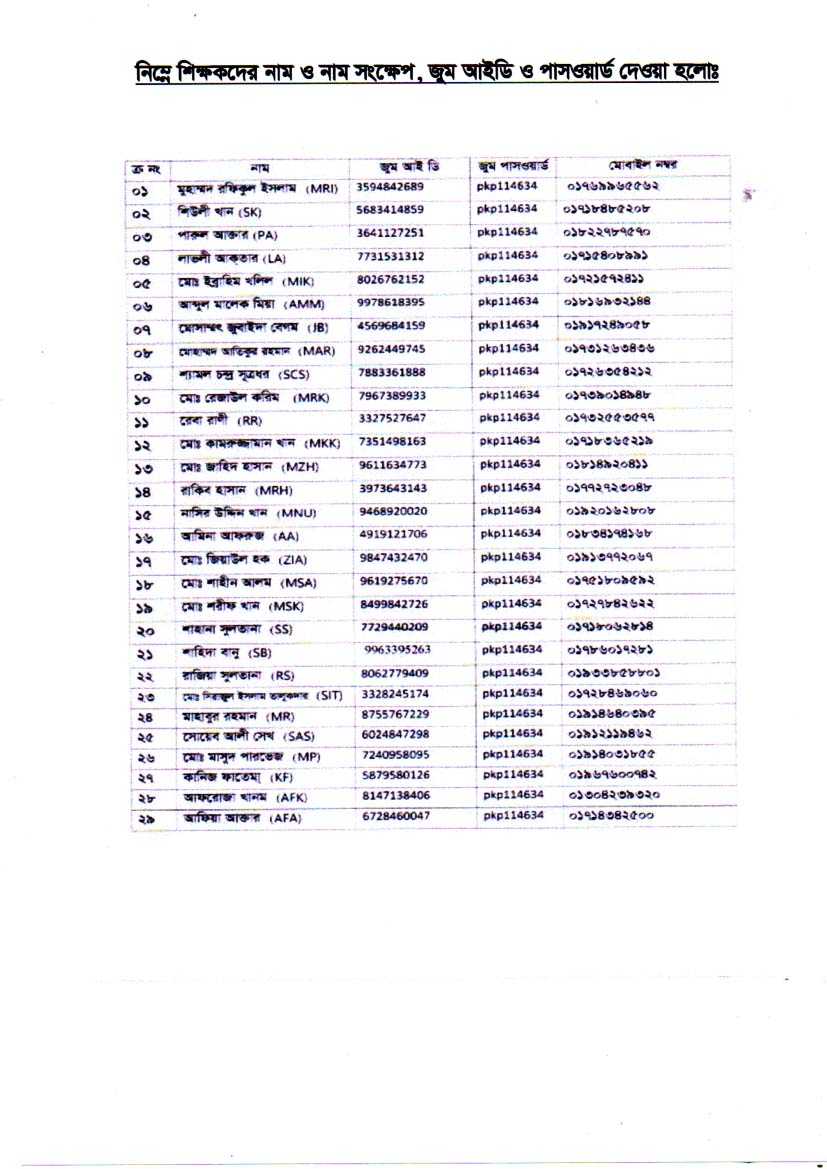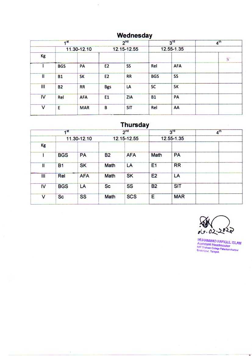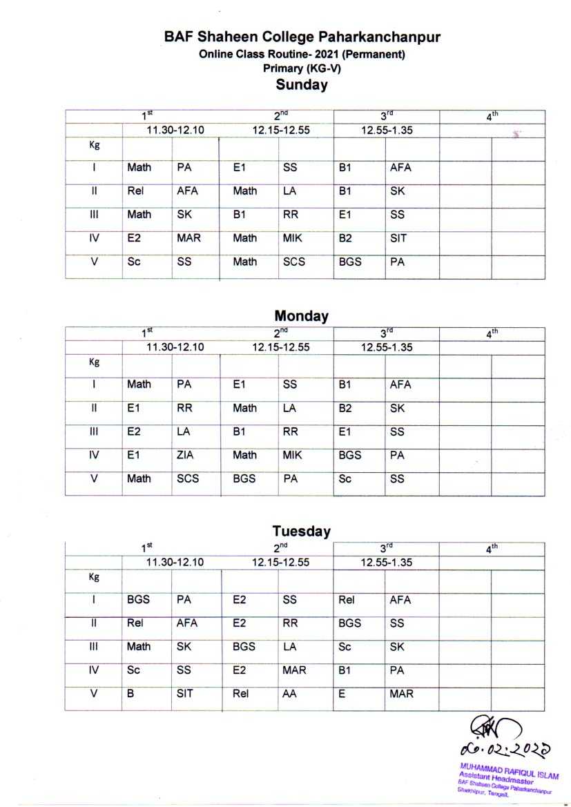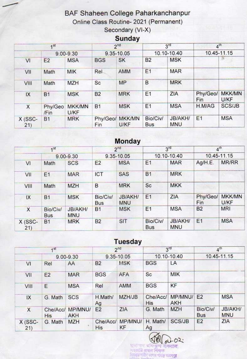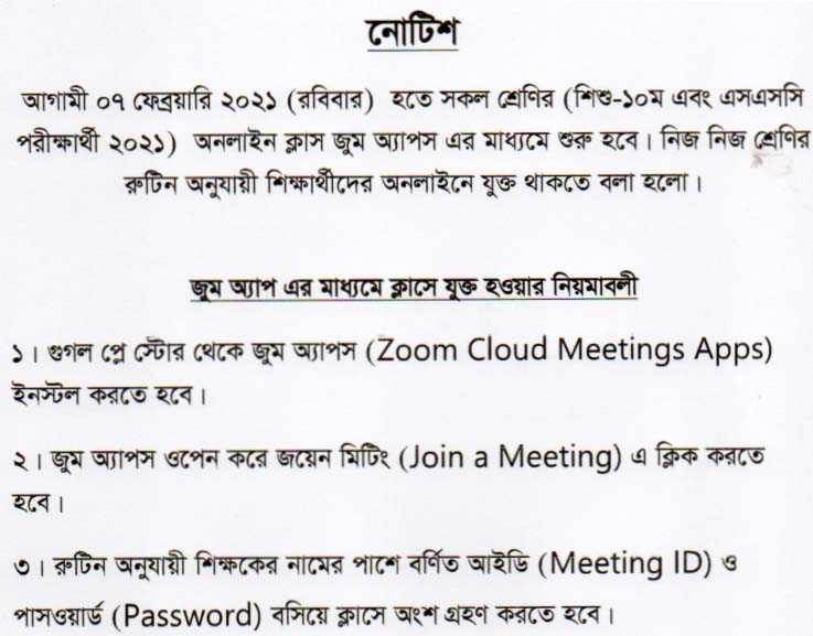 প্রাথমিক ও মাধ্যমিক শাখার অনলাইন ক্লাস রুটিন