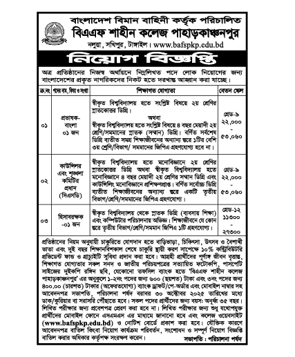 প্রিয় প্রার্থী, আগামী ০৮ নভেম্বর, ২০২৫; সকাল ১০:০০ ঘটিকায় আবেদনকৃত পদের লিখিত পরীক্ষা (পদ সংশ্লিষ্ট বিষয়-৮০, ইংরেজি -১০ ও চলতি বিশ্ব -১০) অনুষ্ঠিত হবে। -বিএএফ শাহীন কলেজ পাহাড়কাঞ্চনপুর, টাংগাইল।