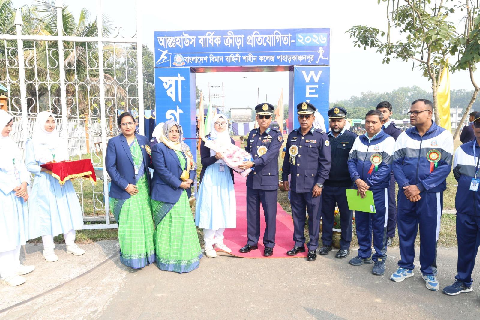 বাংলাদেশ বিমান বাহিনী শাহীন কলেজ পাহাড়কাঞ্চনপুরে অনুষ্ঠিত বার্ষিক ক্রীড়া প্রতিযোগিতা–২০২৬ ছিল উৎসবমুখর, প্রাণবন্ত ও স্মরণীয় এক আয়োজন। দুই দিনব্যাপী এ প্রতিযোগিতার অনুষ্ঠানে প্রধান অতিথি এয়ার কমডোর মুহাম্মদ শরিফুল ইসলাম, বিএসপি, বিপিপি, এনডিসি, এএফডব্লিউসি, পিএসসি,